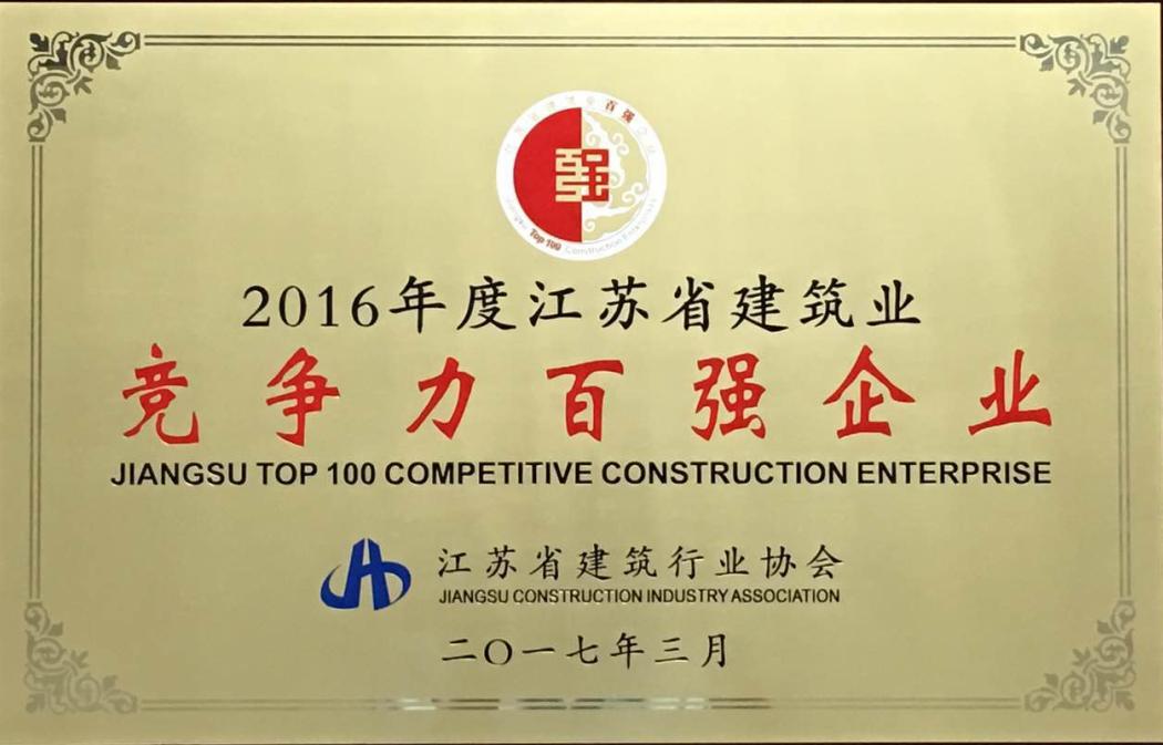 2016年度江蘇省建筑業(yè)競(jìng)爭(zhēng)力百?gòu)?qiáng)