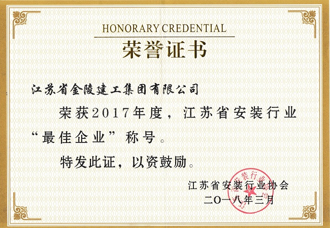 2017年度江蘇安裝行業(yè)協(xié)會(huì)“最佳企業(yè)”