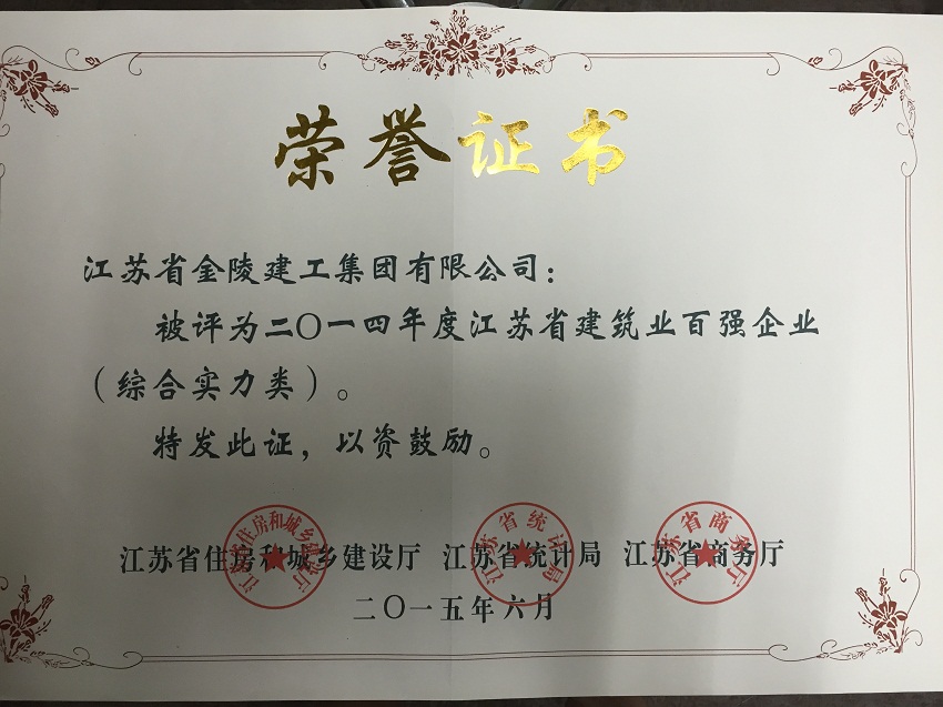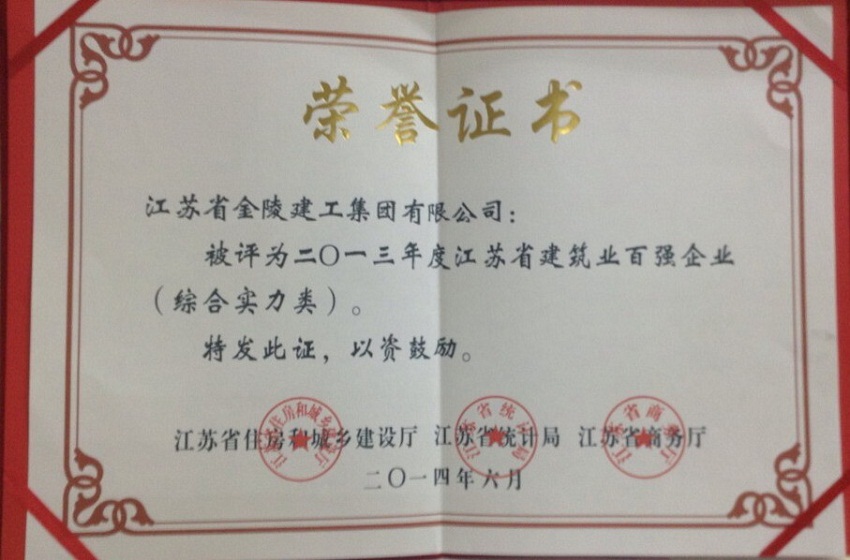 2014年江蘇省建筑業(yè)百強(qiáng)企業(yè)(綜合實力類)獎狀