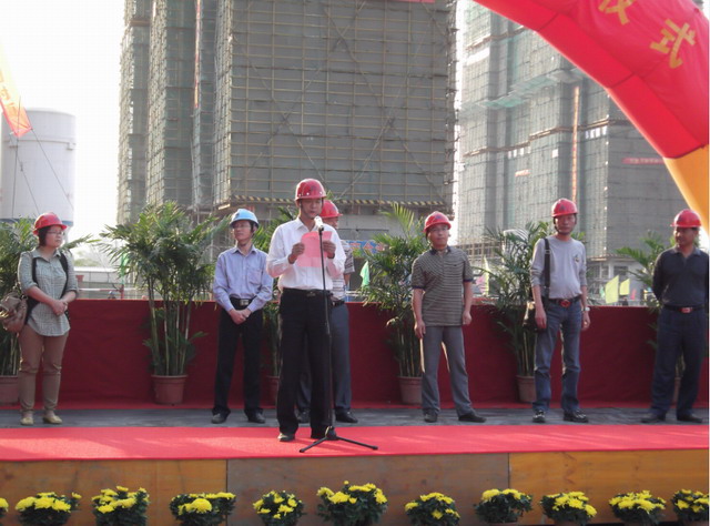 十月金秋,秋高氣爽,工地鮮花錦簇,鼓樂齊鳴,10月10日下午4時18分,我公司濱江和園保障房項目部舉行了隆重熱烈的18層住宅樓封頂儀式。 該工程由6棟18層、5棟28層住宅樓及地庫組成,共17.5萬平方米,分三批次開工,是浦口區(qū)最大的保障房工程。6棟18層住宅樓作為首批開工項目,自今年3月份開工以來,項目部全體管理人員,克服困難,比總進度計劃提前11天完成封頂。 浦口區(qū)房產(chǎn)局副局長劉飛,浦口區(qū)保障房建設發(fā)展有限公司總經(jīng)理薛松,南京堃正工程項目管理有限公司總經(jīng)理左文清及我公司副書記張正山等同志出席了典禮儀式。儀式由代建方江蘇亞東建設發(fā)展集團有限公司浦口分公司總經(jīng)理胡洪軍主持。 在致辭中,胡洪軍對我項目部前期的工作給予充分的肯定,對提前封頂取得階段性成果表示祝賀,并希望我項目部在下階段工程中,發(fā)揚成績,取得巨大勝利。 左文清同志代表監(jiān)理公司發(fā)言,他對項目部的前期工作表示滿意,并表示在今后工作中,繼續(xù)為實現(xiàn)保障房工程達到優(yōu)質(zhì)高速的目標提供服務。 張正山同志代表我公司,向浦口區(qū)有關主管部門、代建方及監(jiān)理單位對工程給予的關心和支持表示感謝,并表示在今后將繼續(xù)努力,兢兢業(yè)業(yè),建造讓人民放心滿意的保障房工程,為浦口區(qū)民生工程做出更大貢獻。 在喜慶的樂曲聲中,封頂儀式圓滿結束!