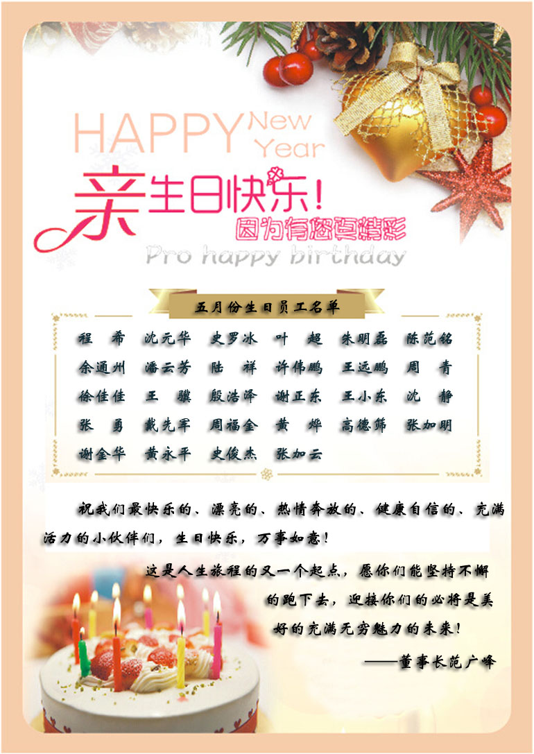 【生日祝福】恭祝5月生日的員工生日快樂(lè)!