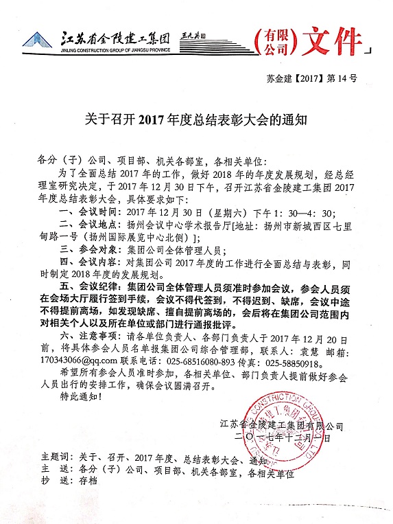 關于召開2017年度總結表彰大會相關會議的通知