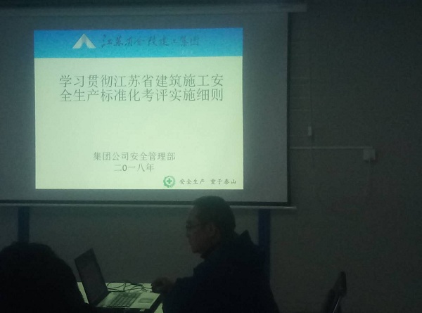 會上,首先由安全管理部副經理孫孝勇帶領大家學習江蘇省住建廳最新發布的《江蘇省建筑施工安全生產標準化考評實施細則》。