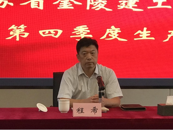 隨后總經(jīng)理程希同志總結(jié)集團(tuán)公司在上一季度中取得的成績與進(jìn)步,指出存在的問題和隱患。重點(diǎn)強(qiáng)調(diào)在四季度把握好“工期、質(zhì)量、安全”三個核心點(diǎn),確保在建工程按質(zhì)按期完成交工。