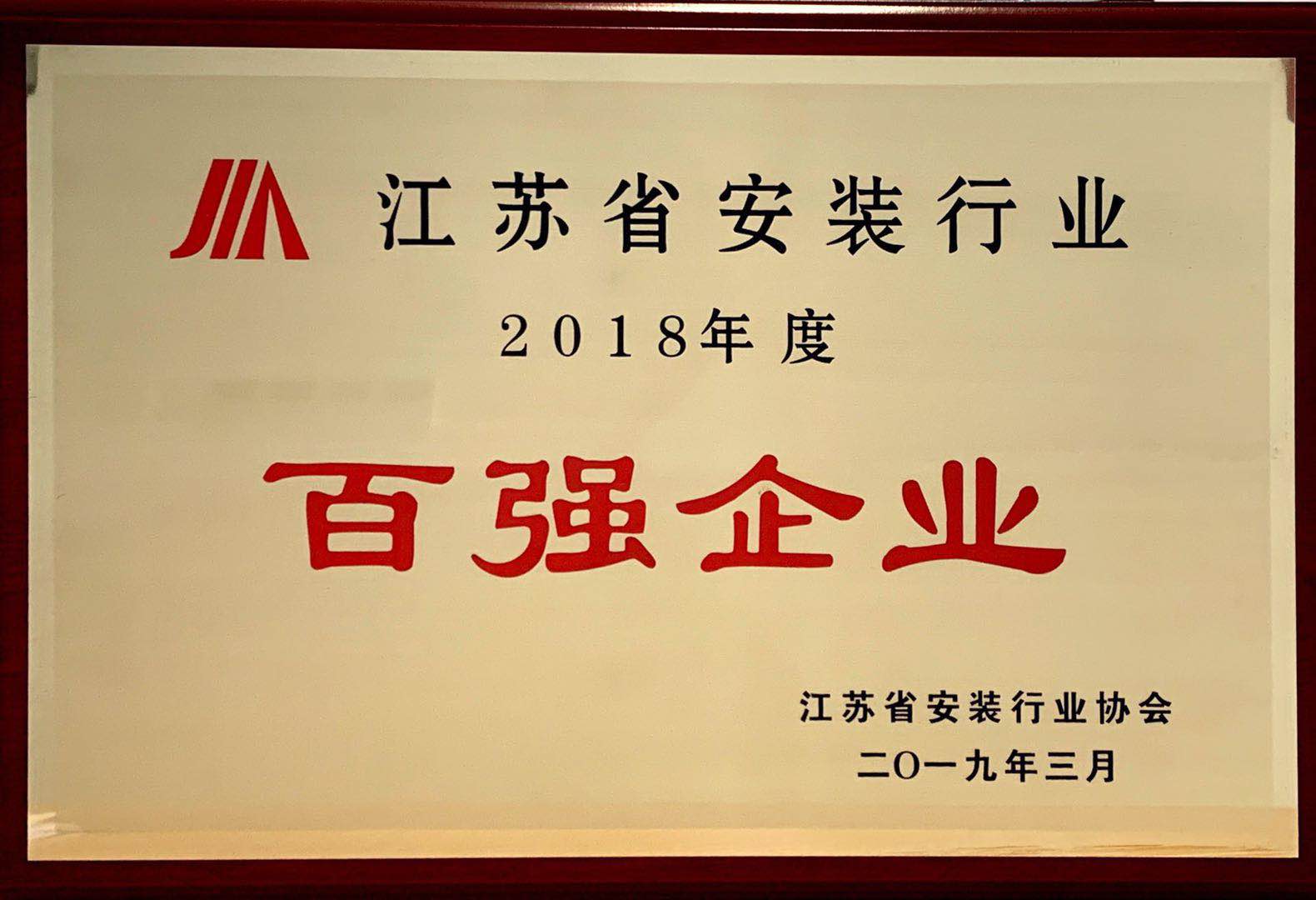 2018年度江蘇省安裝行業協會“安裝百強企業”