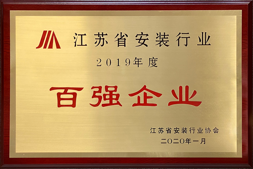 2019年度江蘇省安裝行業協會“安裝百強企業”